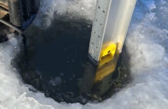 Fishable Ice?… Yes Biting Fish?… Well… Not wanting to go out for the first time in the dark and not wanting to go out in the dark without drilling first, we probably missed the initial money hour. But we now have what I would call ‘fishable ice’, right at 4 inches. Only on a couple of northern lakes, but fishable…